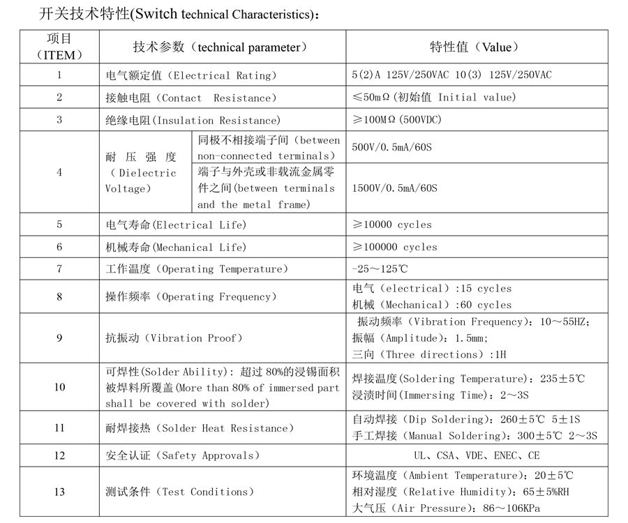 | 6 | 기계적 수명 | ≥100000주기 | |