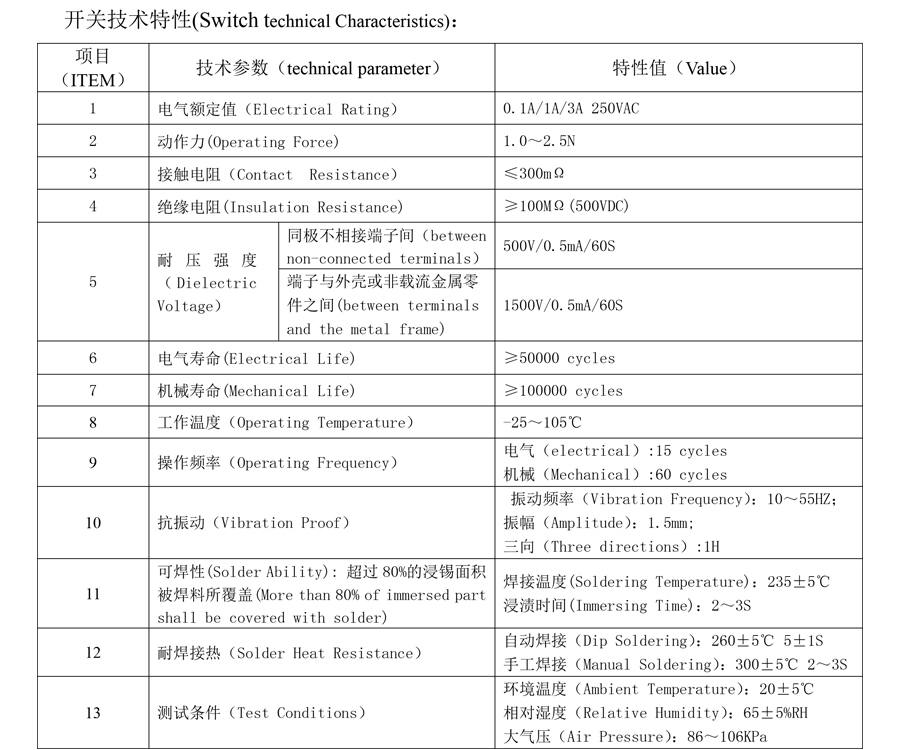 FSK-20은 산업 장비 및 대형 실외 전기 제품의 높은 전력 수요를 위해 전기 성능 측면에서 특별히 업그레이드되었습니다. 접점은 99.9% 고순도 은-팔라듐 합금으로 만들어졌으며, 진공 스퍼터링 기술을 통해 표면 경도가 향상되었으며, 초기 접점 저항은 5mΩ 이하, 정격 부하 최대 20A(250V AC), 순간 스위칭을 지원하는 피크 부하가 30A입니다. 산업용 세탁기, 실외 충전소, 대형 수족관 장치 등 중대전력 장비의 회로 제어를 안정적으로 수용할 수 있어 전류 과부하로 인한 접점 침식 및 성능 저하를 방지할 수 있습니다. 액추에이터 구조는 "이중 접점 연결을 갖춘 강화 스프링" 설계를 특징으로 하며 120,000회 이상의 프레스 주기의 기계적 수명과 80,000회 이상의 전기적 수명을 달성합니다. 고주파 일일 스위칭이 포함된 산업 시나리오에서는 6년 이상 안정적인 작동을 제공할 수 있습니다.