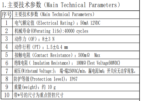 방수 및 방진 마이크로 스위치에는 작은 접촉 간격과 빠른 동작 메커니즘이 있으며, 지정된 스트로크 및 힘으로 동작을 전환하기위한 접촉 메커니즘은 쉘로 덮여 있으며 외부에는 전송이 있으며 모양이 작습니다.